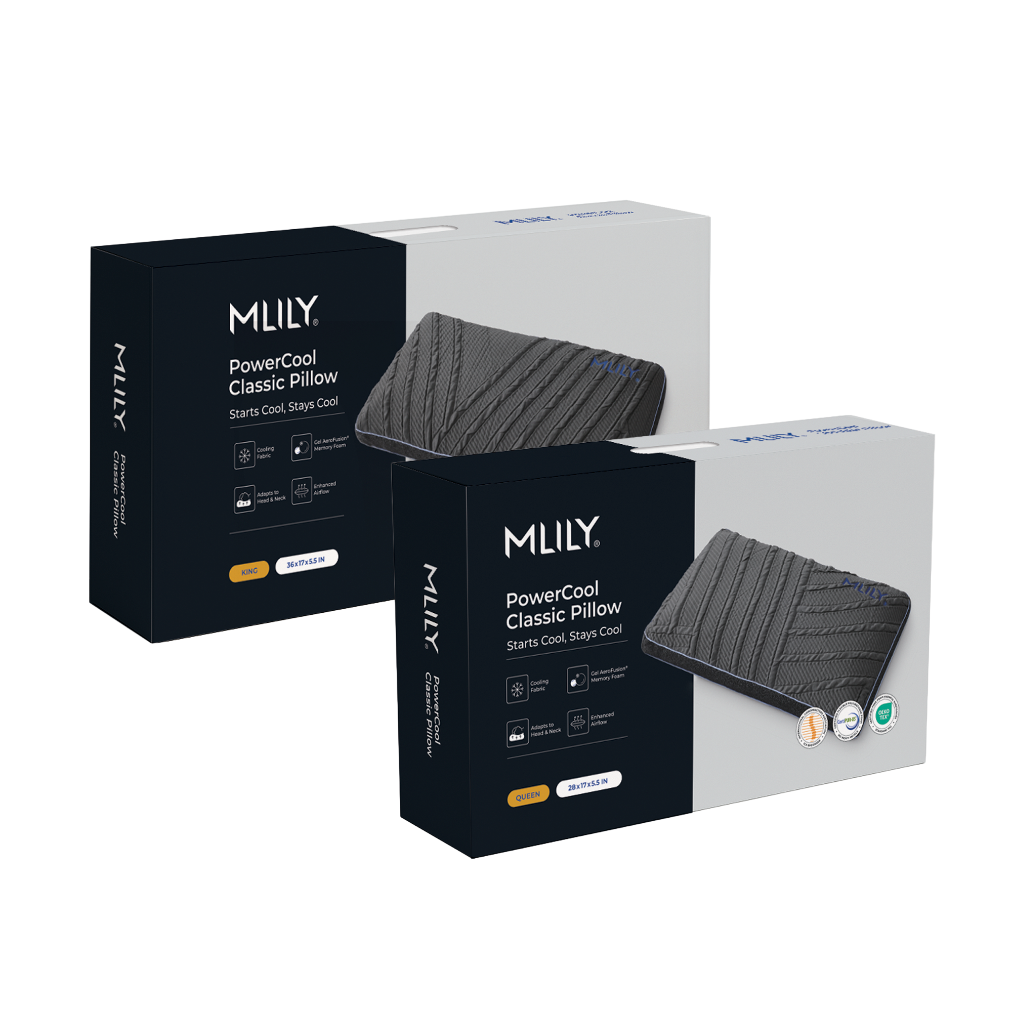Ventilated Gel AeroFusion® Memory Foam: Proprietary foam infused with cooling gel, featuring micro-channels that promote airflow and maintain spinal support.